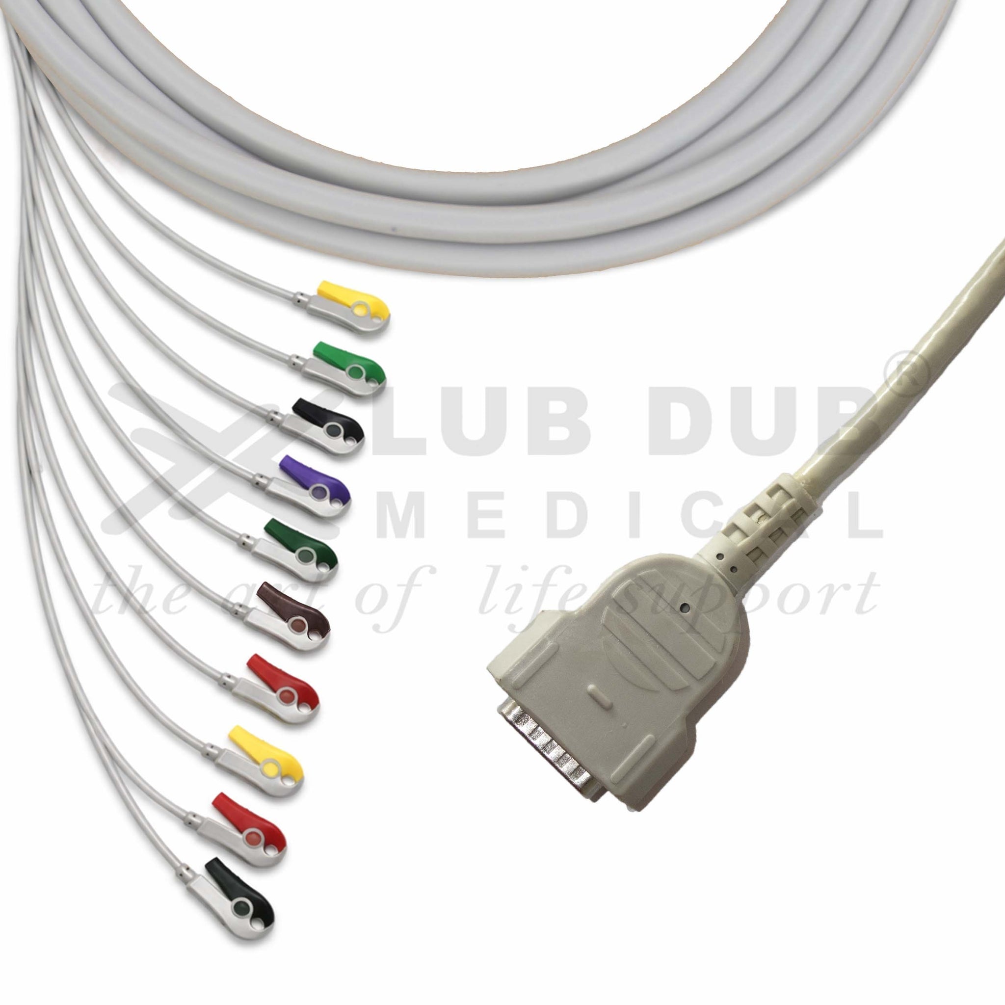 Manufactured with high-quality medical-grade materials, the cable offers excellent durability, flexibility, and signal conductivity. It supports a standard 10-lead ECG configuration, making it suitable for routine cardiac diagnostics and patient monitoring in hospitals, clinics, and diagnostic centers.